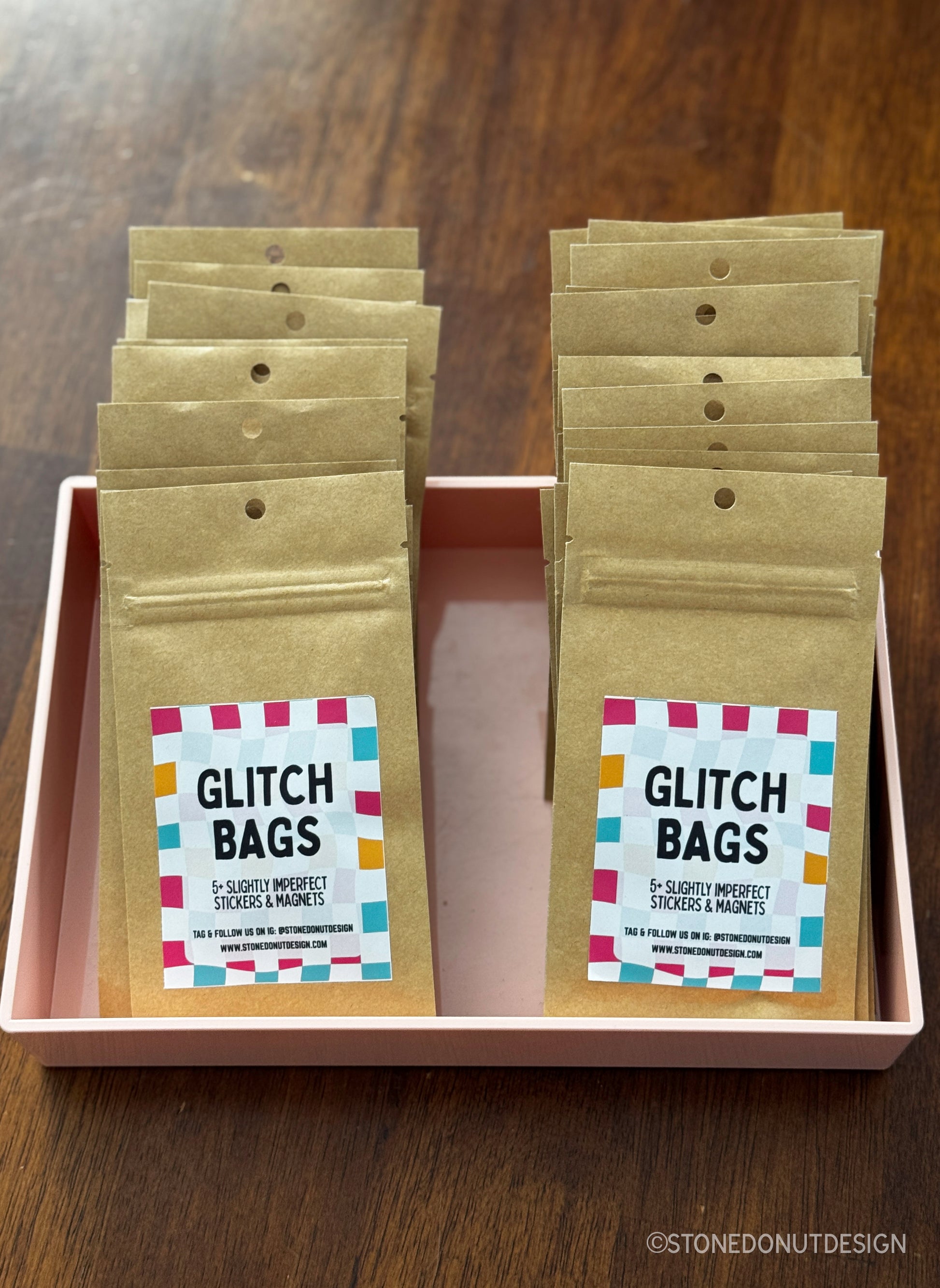 - Sticker Glitch Bag: 5+ randomly chosen slightly imperfect stickers and buttons